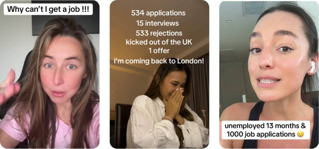 Across TikTok and YouTube, creators are documenting their job search in real time — sharing rejections and interviews.